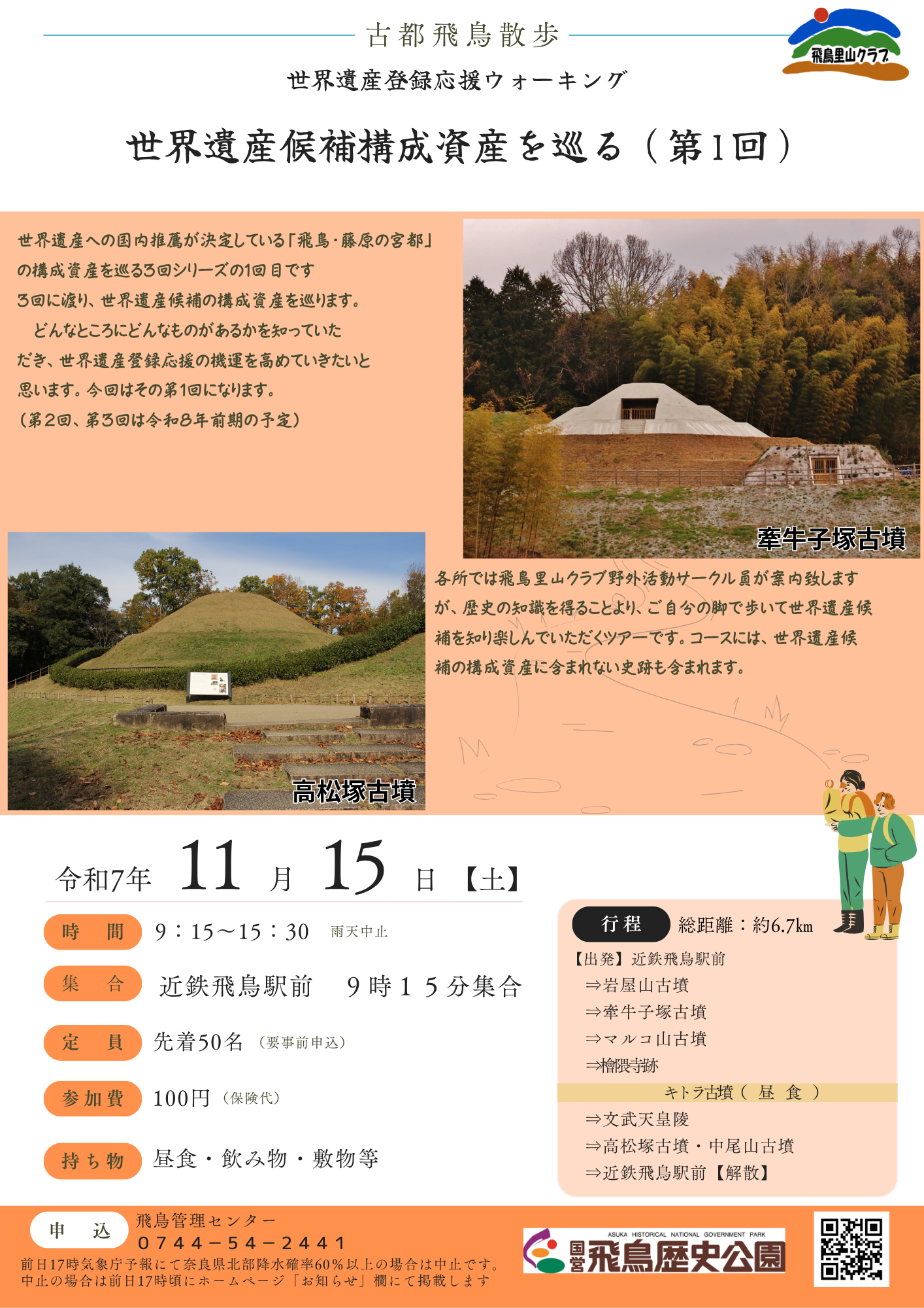 | 申込先 | 飛鳥管理センター 0744-54-2441(9:30~17:00) |